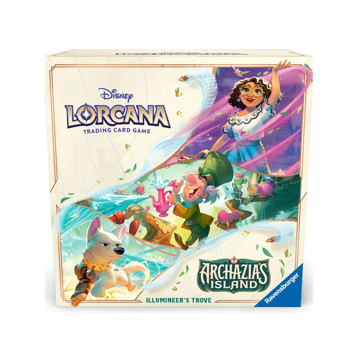 Both collectors and competitive players will enjoy the Illumineer’s Trove. With a full-art storage box and 7 card dividers, you can keep your Disney Lorcana cards safe and organized. It also comes with 8 Booster Packs to expand your collection and give you more options for your decks. Keep track of character and location damage with 6 high-quality damage-counter dice featuring a pearlescent effect. Finally, the distinctive spin-dial lore counter makes it easy to mark your progress toward victory!Disney Lorcana TCG: Archazia’s Island Illumineer's TroveBoth collectors and competitive players will enjoy this Illumineer’s Trove. It’s a beautiful storage solution featuring a full-art storage box and 7 card dividers to keep your Disney Lorcana cards safe and organized. It also comes with 8 Booster Packs to expand your collection and give you more options for your decks.What’s included:• 8 Booster Packs of 12 additional game cards each• 6 Damage-Counter Dice• 7 Card Dividers• 1 Lore Counter• 1 Card Storage Box