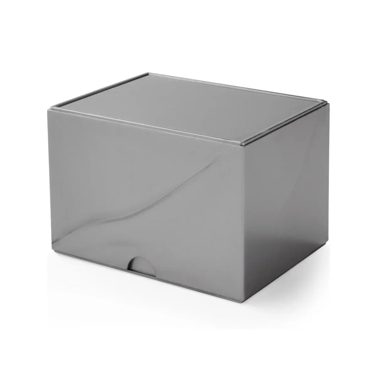 Silver all the way around. Completely opaque. Dragon Shield Strongboxes keep your cards safe between games. The Strongbox is made of strong acrylic, tough enough to withstand a Dragon's Fangs, and features a tight fitting lid, which covers the entire box, making it completely dust and splash proof. A discrete groove makes the boxes stackable. The Strongbox holds 115+ single sleeved cards or 100+ doublesleeved cards, and works with both Standard Size cards (63x88 mm) and Japanese Size cards (59x86 mm).