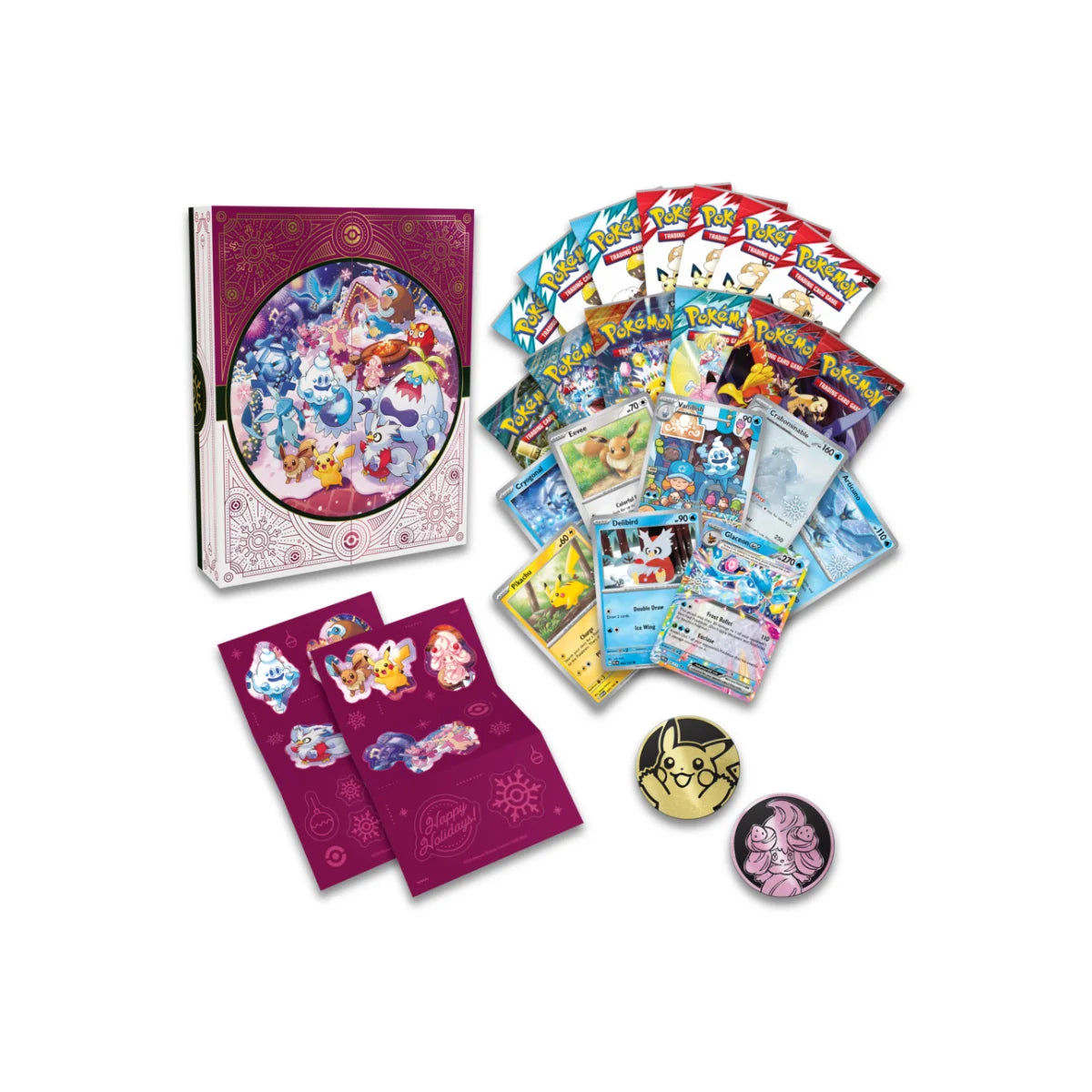 Countdown to the holidays with 25 days of Pokémon fun! The Holiday Calendar is packed with foil cards, booster packs, coins, stickers, and more.