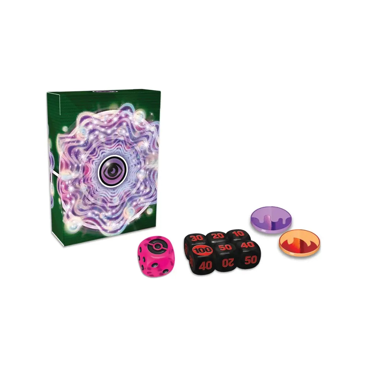 In this box, you’ll find:1 ready-to-play 60-card deck6 damage-counter dice1 coin-flip die2 coin condition markers1 deck box1 strategy sheet1 code card to play this deck online