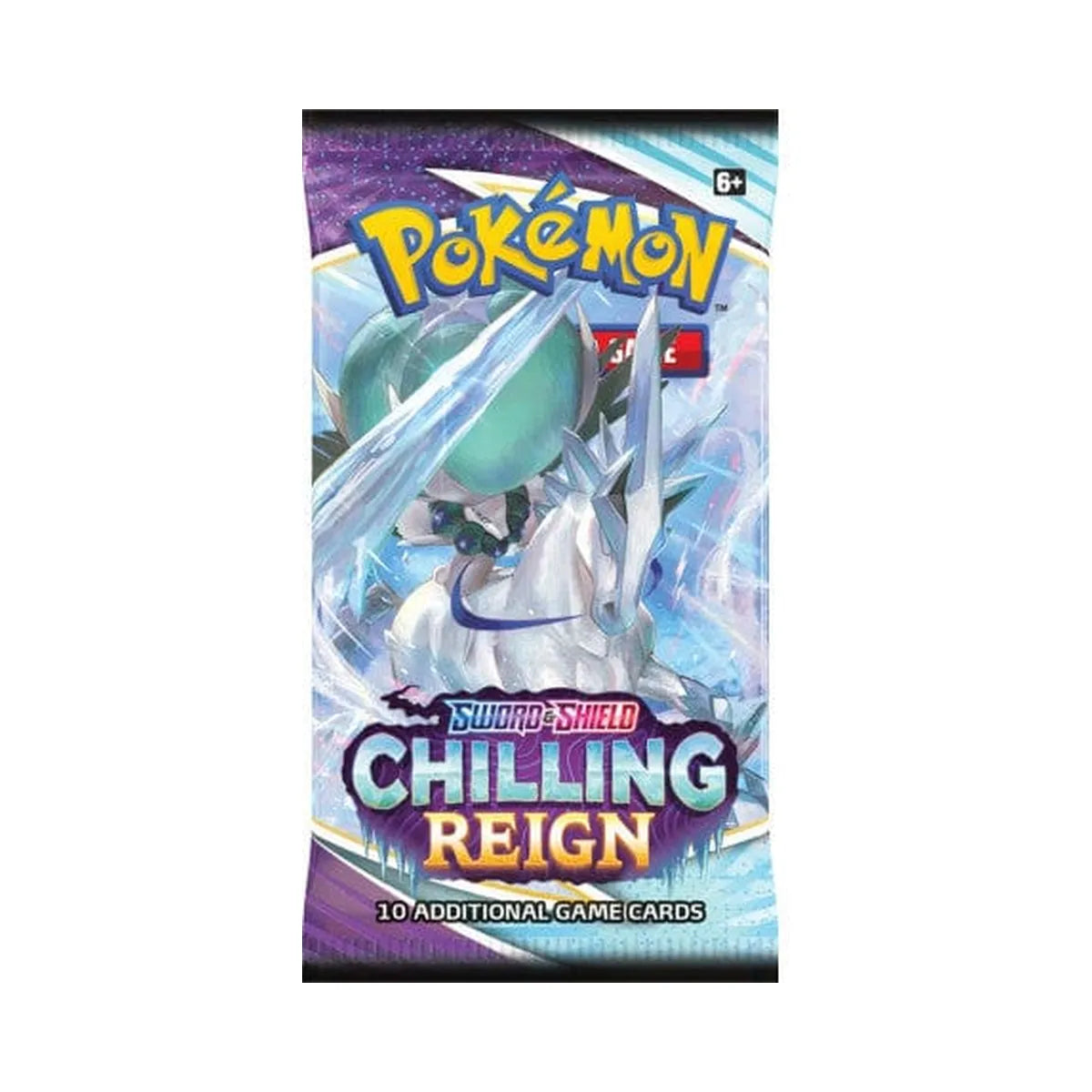 Unleash frozen power with the Sword & Shield – Chilling Reign booster pack! Each pack contains 10 random cards from a 230+ card set featuring Ice Rider Calyrex, Shadow Rider Calyrex, and the Galarian Legendary Birds.